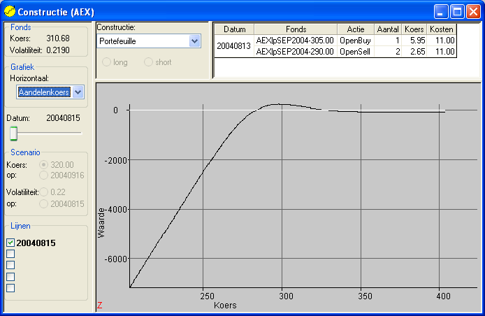 Koers-Waarde grafiek bij expiratie in september 2004: