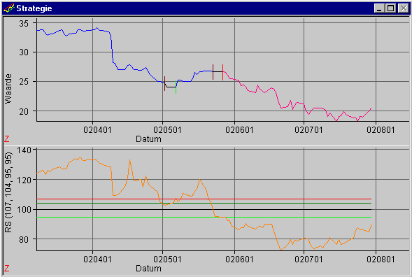 Even later daalt de RS-lijn zelfs onder de groene lijn (95) wat het signaal is